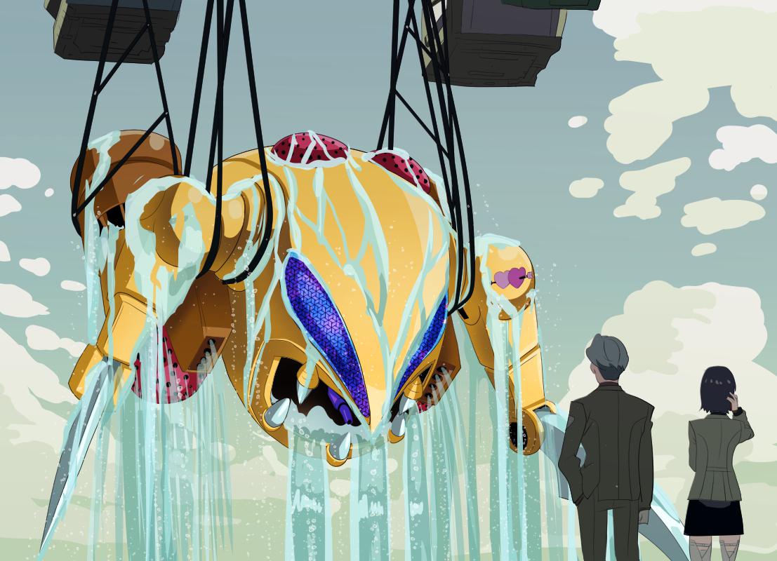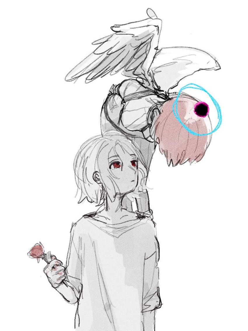 ひとりのてんしがやってきたどうやらじごくからだっしゅつしてきたものらしいゆうへいされていたじごくをぬけだしほごしているふたりのへいわをみだそうとしている