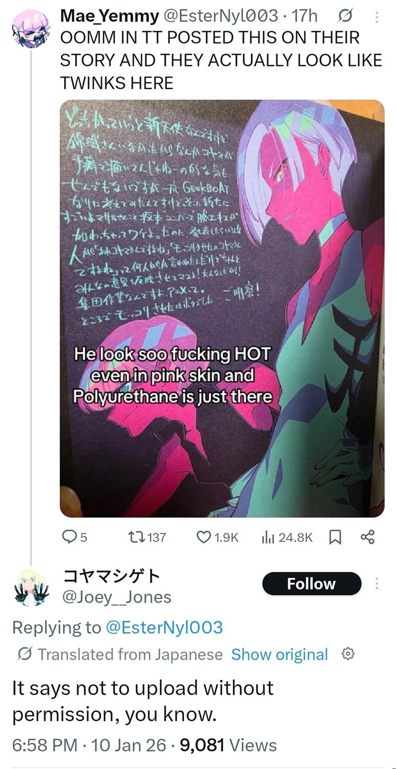 漫画家でイラストレーターの江口寿史さん(69)が手がけた「中央線文化祭2025」の告知イラストが「制作過程に問題があった」として使用されなかった問題で、 江口さんは30日、自身のX(旧ツイッター)に文書を投稿し、「関係者の皆様に深くおわびします」と謝罪した。 https://news.yahoo.co.jp/articles/89836b66e6e646e6022ab655a0044c755c9caa1b SNS上の女性の写真を無断で参考にしたことについて、女性本人と弁護士を通じて双方で合意し、和解しているとした。 また、自身の制作手法について説明した上で、「何を元に描いても『江口寿史の絵』になっていればいいのだという驕(おご)りも生まれていたのかもしれません」と反省を表明した。 https://tadaup.jp/Cud1s2n7.jpg https://tadaup.jp/CpBhwe71.png https://tadaup.jp/CyR5Uhgr.jpg